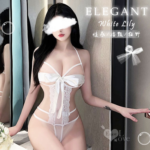 狂野連身衣!寬版繫帶蝴蝶結遮胸雙線Y字美臀開襠裝﹝白﹞