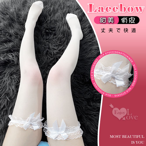首頁 > 女性情趣內衣/褲 > 性感絲襪/網襪 > 蝴蝶結拼接滾邊蕾絲長筒絲襪﹝白﹞