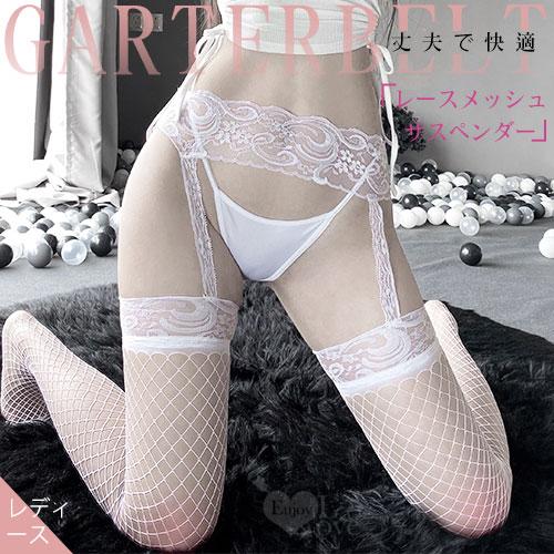 情趣吊襪帶!彈力一體蕾絲帶透視連身網襪﹝白﹞