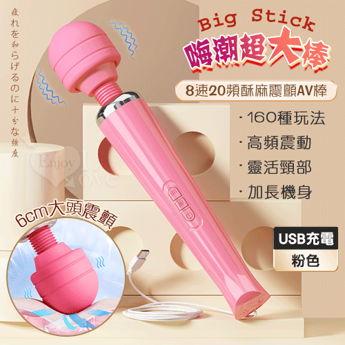 Big Stick 嗨潮超大棒 ‧ 8x20酥麻震顫AV女優大滿足潮吹按摩棒﹝6CM大頭+靈活頸部+USB充電﹞粉【特別提供保固6個月】
