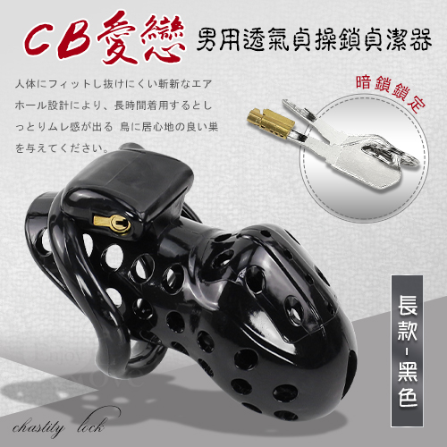 CB愛戀 ‧ 男用透氣貞操鎖貞潔器 - 暗鎖鎖定+四個大小卡環﹝長款-黑色﹞
