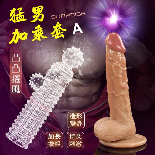 首頁 > 猛男加強專區 > 加長/加粗套-非電動 > Surprise 猛男加乘套A ‧ 凸凸捲風 進化造形大變身老二套﹝加長+增粗+持久刺激﹞透明色