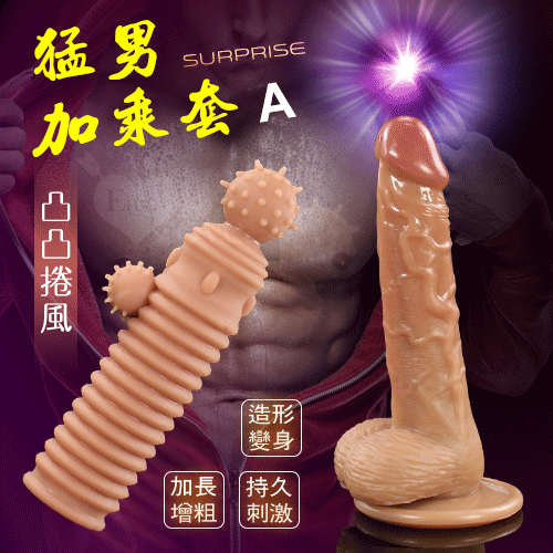 首頁 > 猛男加強專區 > 加長/加粗套-非電動 > Surprise 猛男加乘套A ‧ 凸凸捲風 進化造形大變身老二套﹝加長+增粗+持久刺激﹞棕色