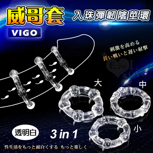 Vigo 威哥套 ‧ 三合一入珠彈韌陰莖加強環﹝透明白﹞*特價*