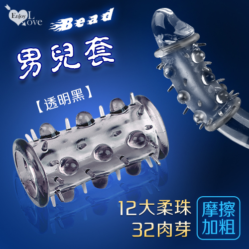 首頁 > 猛男加強專區 > 加長/加粗套-非電動 > Enjoy Love ‧ Bead 男兒套 12大柔珠+32肉芽摩擦加粗GG套﹝透明黑﹞