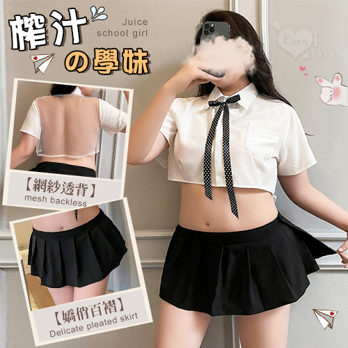 首頁 > 女性情趣內衣/褲 > 大尺碼專區 > 【棉花糖女孩】大尺碼學生角色扮演服!後背裸肌透紗拼接襯衫百摺短裙四件式套裝