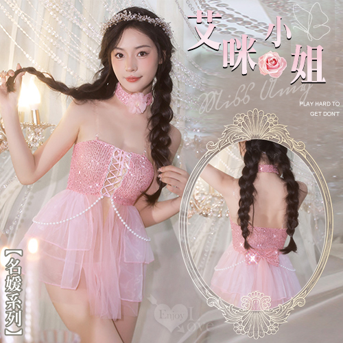 【姬兒小姐】銀河閃閃花朵綁脖飄逸花邊珠光連身裙兩件組