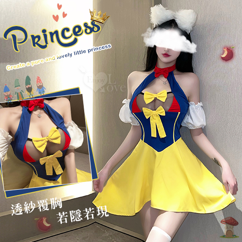首頁 > 女性情趣內衣/褲 > 角色扮演服 > 情趣睡衣!經典藍黃撞色公主風薄紗透胸蝴蝶結點綴A字裙三件組