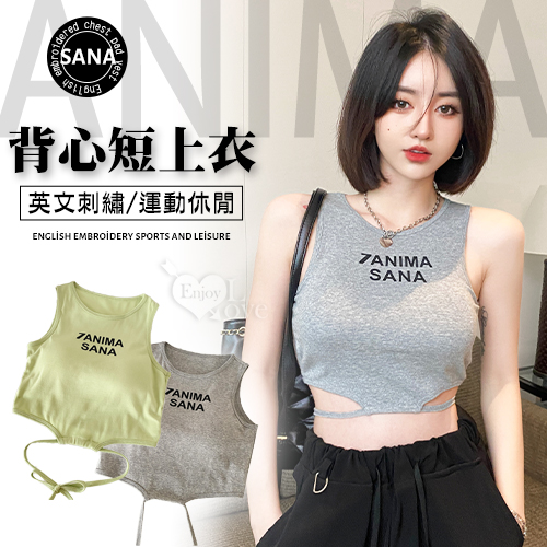 首頁 > 女性情趣內衣/褲 > 背心/小可愛 > 英文刺繡運動休閒帶胸墊背心式短上衣﹝灰﹞