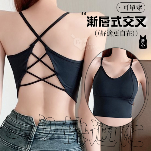 迷人美肩可調節細帶漸層式交叉小可愛﹝黑﹞