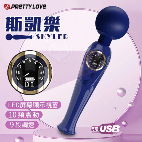 派蒂菈 ‧ SKYLER 斯凱樂 LED顯示10變頻X9段調速強震矽膠大頭AV棒 - 寶藍 (輕鬆GET敏感地帶 )【特別提供保固6個月】