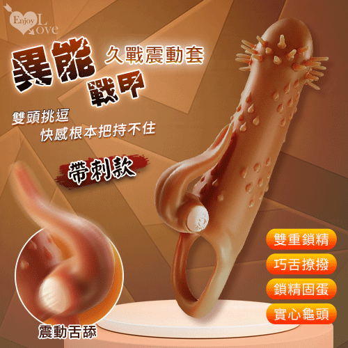 首頁 > 猛男加強專區 > 加長/加粗套-電動型 > Enjoy Love ‧ 異能戰甲 帶刺款 - 鎖精固蛋/巧舌撩撥/增長變粗/實心龜頭 久戰震動套﹝30軟刺+65凸點﹞