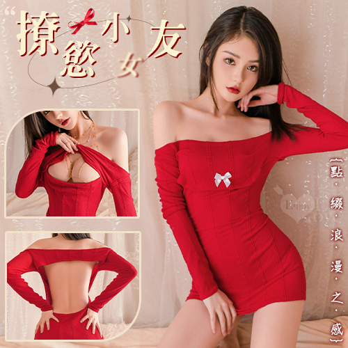 情趣睡衣!平口香肩可掀露乳裸背針織包臀短裙兩件組