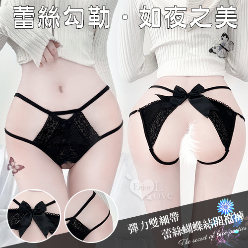 薄透花紋挖空露臀蝴蝶結鈴鐺開襠褲﹝黑﹞