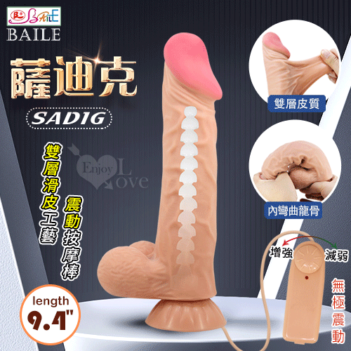 首頁 > 女性用品 > 逼真陽具-電動型 > 【BAILE】SADIG 薩迪克 無極震動 內挺外柔 9.4吋雙層滑皮工藝 仿真膚質吸盤粗大老二按摩棒﹝內彎曲龍骨﹞
