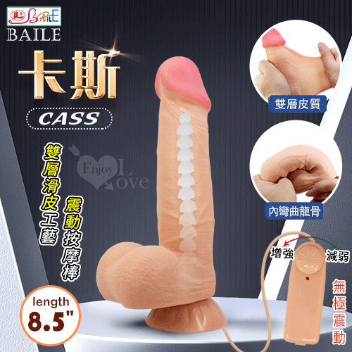 首頁 > 女性用品 > 逼真陽具-電動型 > 【BAILE】CASS 卡斯 無極震動 內挺外柔 8.5吋雙層滑皮工藝 仿真膚質吸盤老二按摩棒﹝內彎曲龍骨﹞
