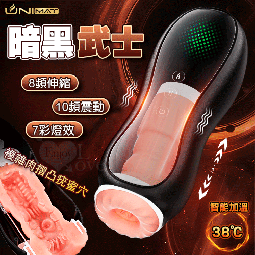首頁 > 男性用品 > 電動自慰杯/器 > 誘魅UNIMAT ‧ 暗黑武士 智能8x10伸縮+震動 7彩燈效 複雜肉摺凸疣蜜穴 智能加溫飛機杯