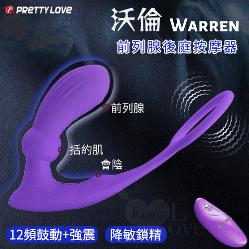 首頁 > 男性用品 > 前列腺刺激器 > 派蒂菈 ‧ Warren 沃倫 無線遙控12頻鼓動x12強震前列腺後庭按摩器﹝鎖精環+親膚矽膠+USB便捷充電﹞紫色【特別提供保固六個月】