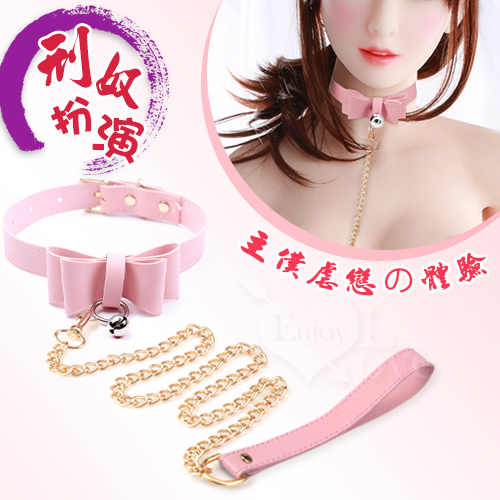 SM 刑奴扮演 ‧ 粉色蝴蝶結鈴鐺項圈+牽引金屬鐵鏈組合
