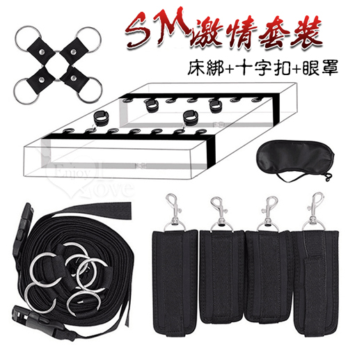 SM 激情套裝 ‧ SM全方位床上捆綁束縛組+眼罩+十字扣