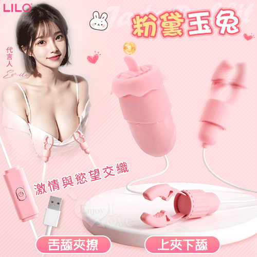 首頁 > 女性用品 > 陰/乳調教刺激用品 > LILO 來樂 ‧ 粉黛玉兔 舌舔夾撩 12頻雙震動乳夾+撩震觸擊雙組合挑逗器 - USB直插供電【特別提供保固六個月】