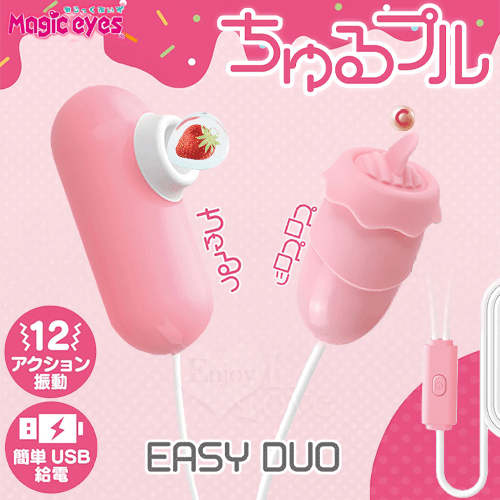 日本Magic eyes.ちゅるプル 12頻舌舔撩震+吮震按摩 USB直插供電雙跳蛋【特別提供保固6個月】