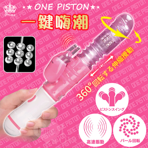 日本Prime.ONEPISTON 一鍵嗨潮 360°回転する滾珠伸縮攪動撩震按摩棒﹝透明粉﹞【特別提供保固6個月】