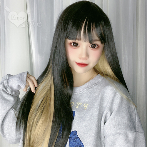 Cospaly齊劉海長直髮耳圈染-黑色+亞麻色