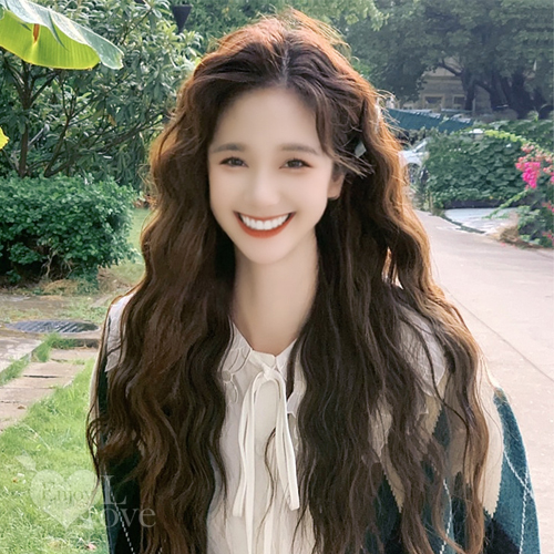網紅韓式羊毛卷中分波浪長捲假髮 / 深棕色