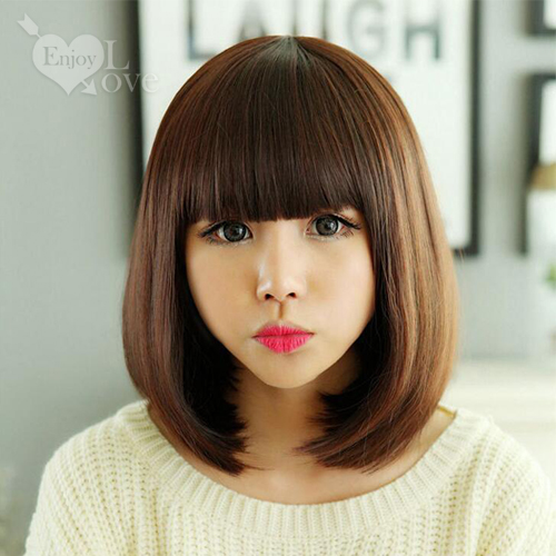 成人or娃娃裝扮假髮 ‧ 齊瀏海可愛C字內灣燙短直髮 / 淺棕色