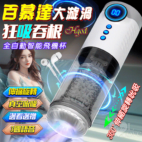 Hgod 百慕達大漩渦 ‧ 全自動9頻伸縮+旋轉+真空吮吸 發聲智能飛機杯﹝液晶數位顯示+3國語音+耳機+可視窗口/自慰/鍛練﹞