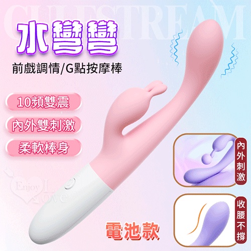 首頁 > 女性用品 > G點按摩棒 > Gulfstream 水彎彎 ‧ 雙10頻震動人體工學感官內外雙刺激點按摩棒﹝蜜粉﹞電池款【特別提供保固6個月】