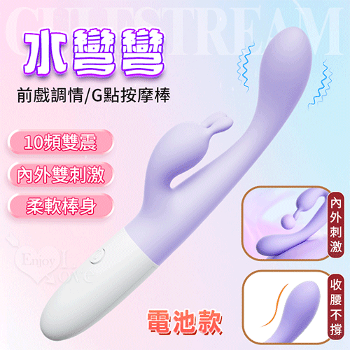 首頁 > 女性用品 > G點按摩棒 > Gulfstream 水彎彎 ‧ 雙10頻震動人體工學感官內外雙刺激點按摩棒﹝淺紫﹞電池款【特別提供保固6個月】