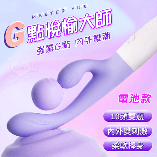 首頁 > 女性用品 > G點按摩棒 > G點悅愉大師 ‧ 雙10頻震動人體工學感官內外雙刺激點按摩棒﹝淺紫﹞電池款【特別提供保固6個月】