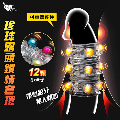 Enjoy Love ‧ 12珍珠露頭鎖精套環﹝帶刺狼牙~粗大顆粒~重覆使用﹞