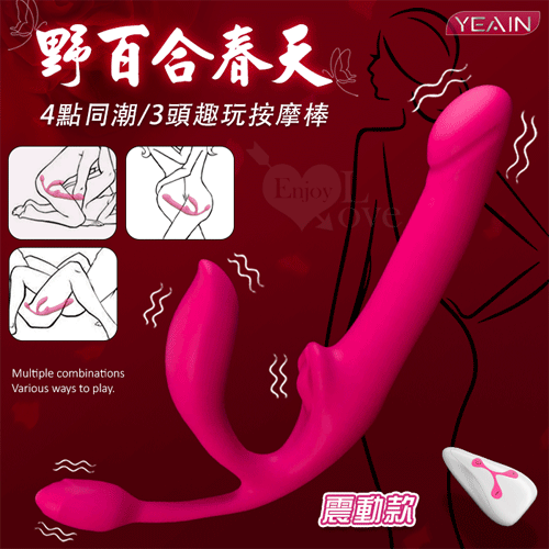 YEAIN夜樱 ‧ 野百合春天 無線遙控4點12頻共震3頭趣玩與她0距離交流按摩棒【特別提供保固6個月】