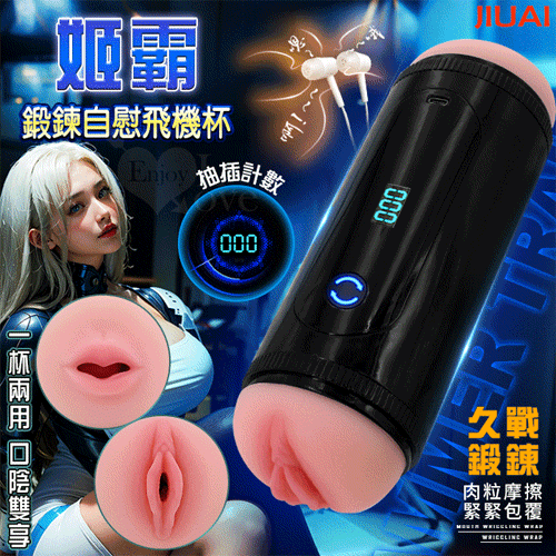 JIUAI 姬霸 ‧ 久戰鍛鍊~雙頭女陰+口舌抽插進入計次顯示自慰飛機杯﹝10頻震+語音淫聲+耳機+USB充電﹞