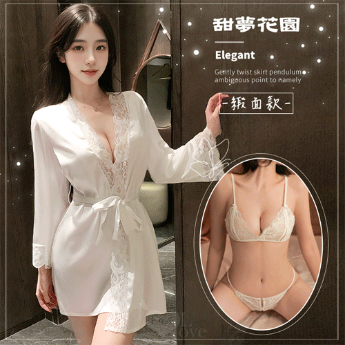 首頁 > 女性情趣內衣/褲 > 性感睡衣 > 情趣睡衣!蕾絲花邊比基尼百搭睡袍絲綢緞面三件組﹝白﹞
