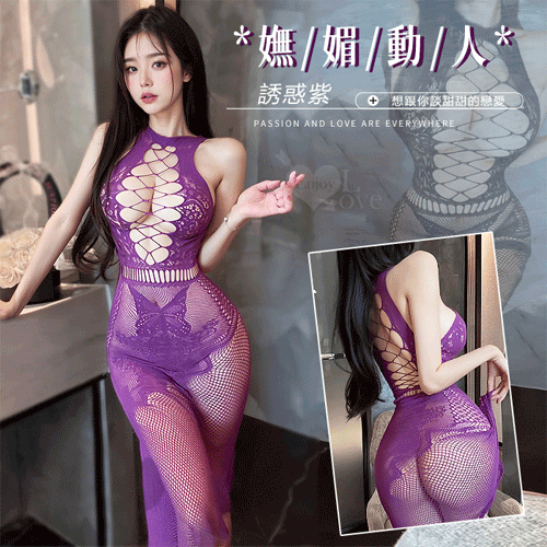 首頁 > 女性情趣內衣/褲 > 極性貓裝/網衣 > 極性貓裝!鏤空美胸蝴蝶緹花不修邊斜裙擺連身網衣長裙﹝紫﹞