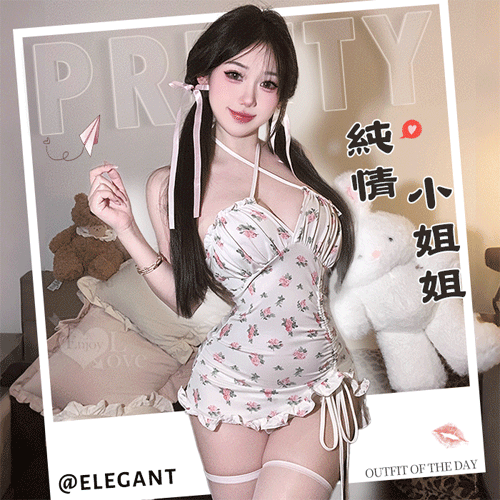 首頁 > 女性情趣內衣/褲 > 性感睡衣 > 情趣睡衣!少女風交叉綁脖荷葉邊側抽繩玫瑰連身裙含襪三件組
