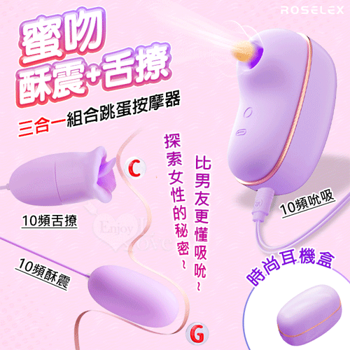 首頁 > 跳蛋專區 > 長短組合跳蛋 > ROSELEX 勞樂斯 ‧ 蜜吻圓舔款~10頻酥震+舌撩+吮吸三合一組合按摩器﹝時尚耳機盒+USB充電﹞紫【特別提供保固六個月】