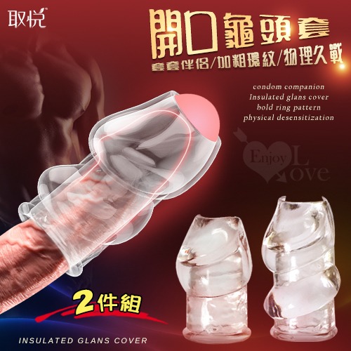 首頁 > 猛男加強專區 > 加長/加粗套-非電動 > 玩爆潮品 ‧ 降敏-耐力-堅挺開口露龜頭套﹝2件組﹞配合保險套使用
