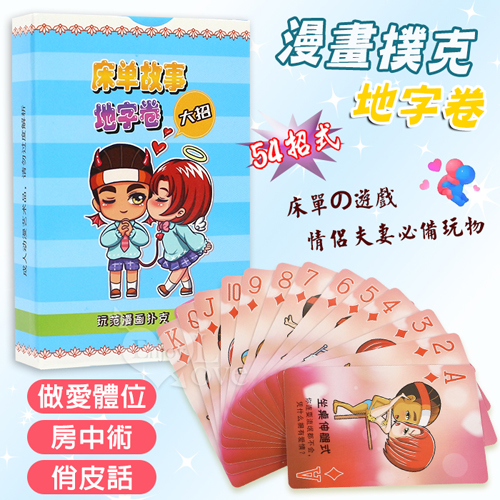 首頁 > 兩性用品 > 情愛合歡輔助品 > 漫畫撲克-地字卷 房中術54招式 夫妻/情侶做愛體位/俏皮話玩具