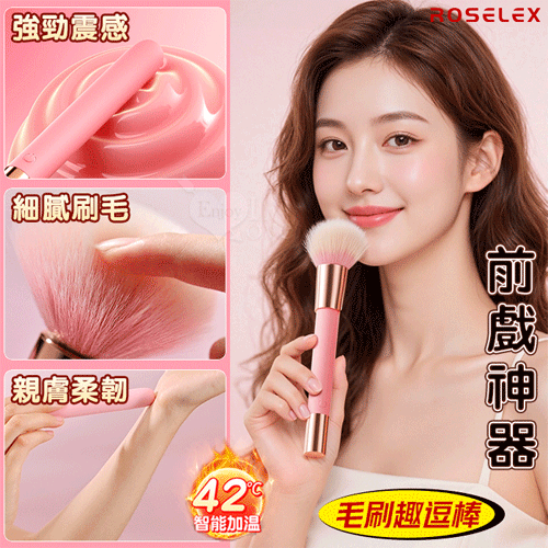 ROSELEX 勞樂斯 ‧ 趣逗棒(含毛刷)10段高頻震智能加溫按摩棒 強震/酥麻/輕巧/隱蔽/挑逗柔軟毛刷-粉【特別提供保固六個月】
