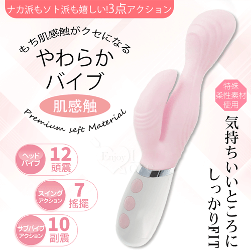日本NPG.やわらかバイブ 肌感触 12頻頭震+7搖擺+10副震多功能柔和按摩棒-粉【特別提供保固六個月】